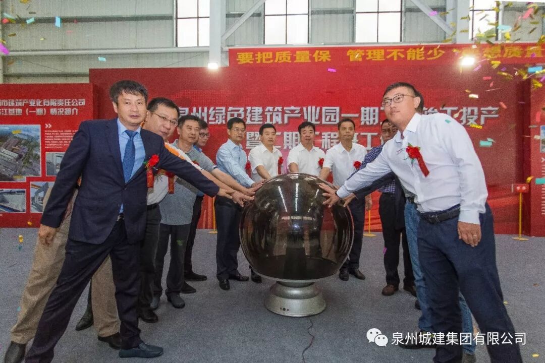 10月11日上午,泉州綠色建筑產(chǎn)業(yè)園一期工程竣工投產(chǎn)暨二期工程開工儀式在洛江基地一期舉行。